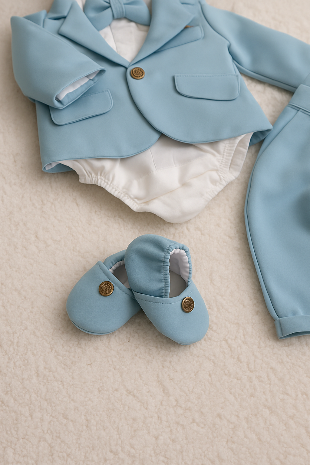 Fie că este vorba de botez, aniversare sau o ocazie specială, acest set este alegerea perfectă pentru un băiețel elegant! 🎀💙