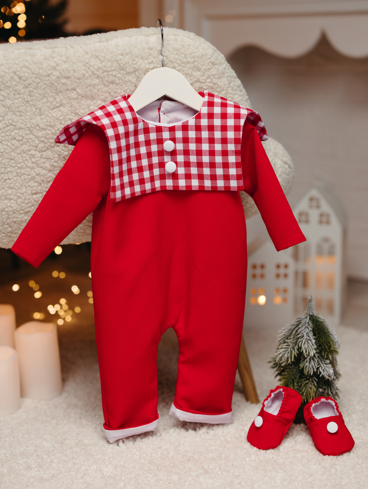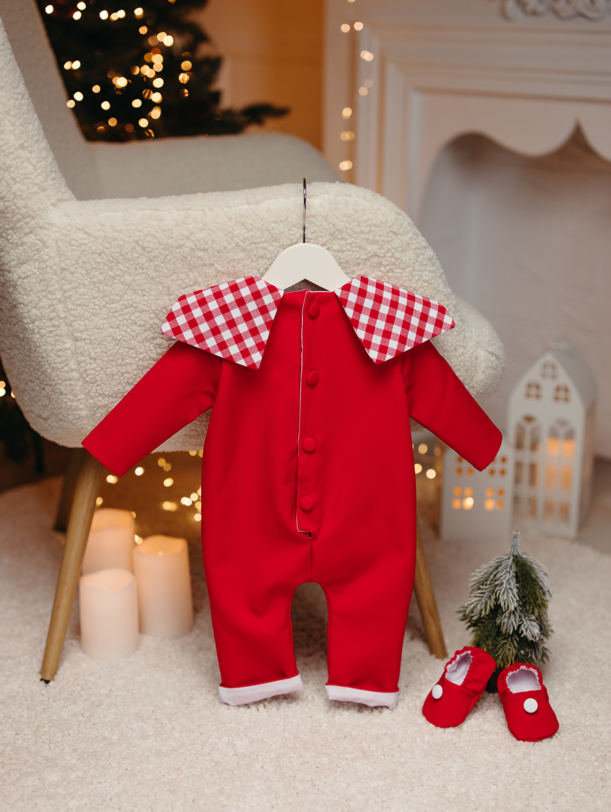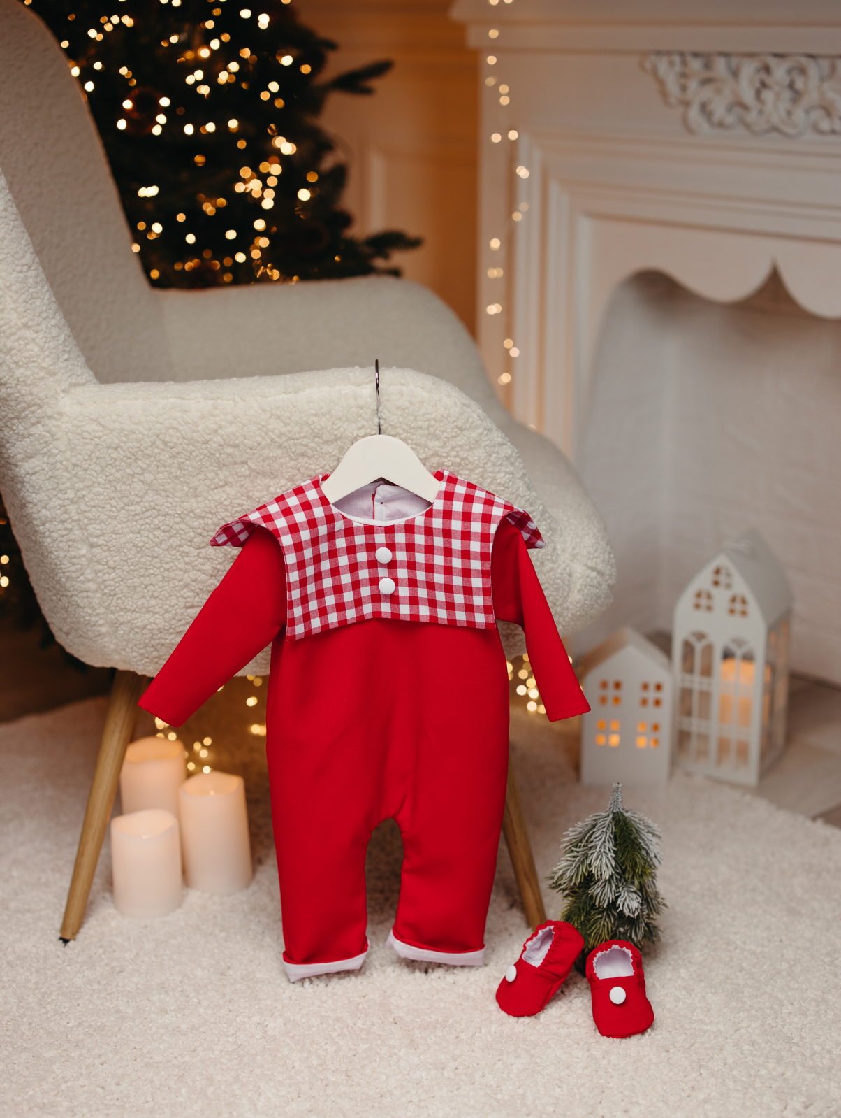 Inspirată de magia Crăciunului, salopetica Nicholas îmbină confortul cu eleganța clasică, fiind alegerea perfectă pentru ședințe foto, aniversări sau Ajunul de Crăciun.