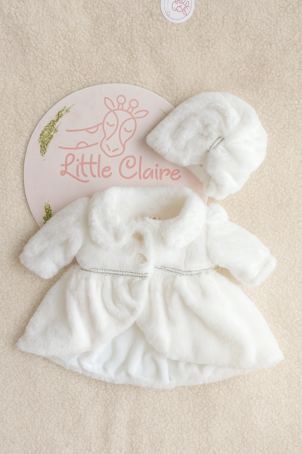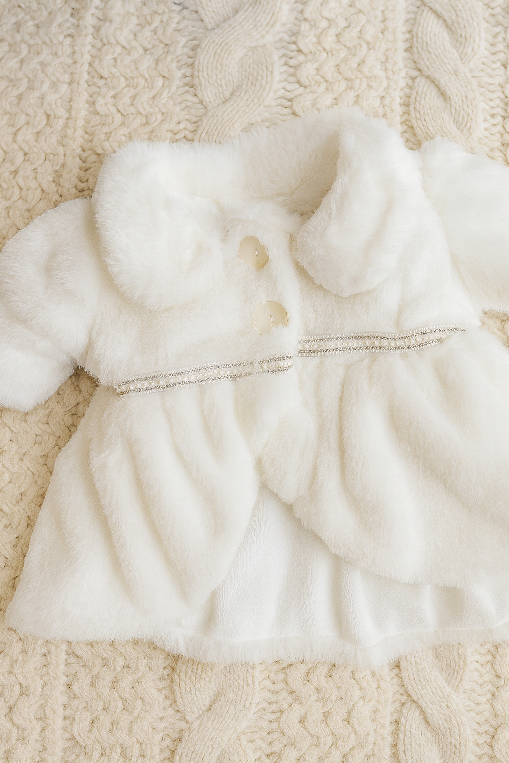 Acest set adorabil cu paltonas din blăniță pentru bebeluși și turban nu numai că îi va menține călduroși pe cei mici în sezonul rece, dar și va adăuga un strop de farmec și stil în fiecare zi. Este cadoul perfect pentru proaspeții părinți sau o completare perfectă a garderobei bebelușului vostru. Cu acest set, fiecare zi devine o aventură plină de căldură și dulceață pentru cel mic.