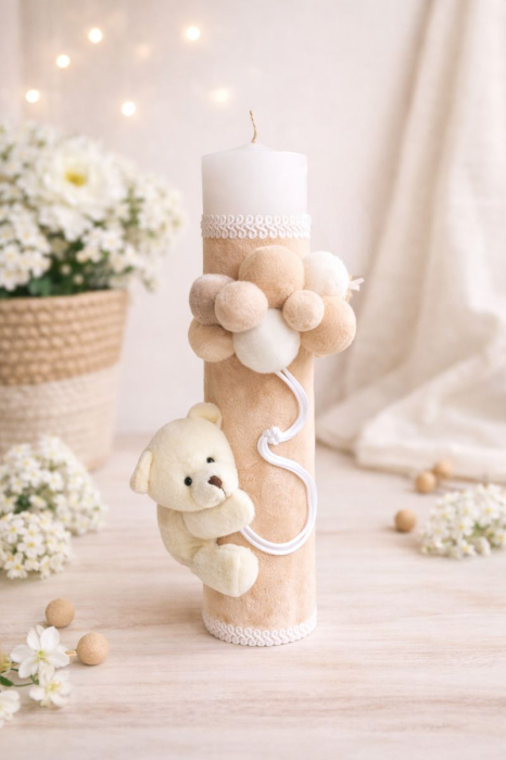 Little Claire Lumanare botez ursulet nuante crem
