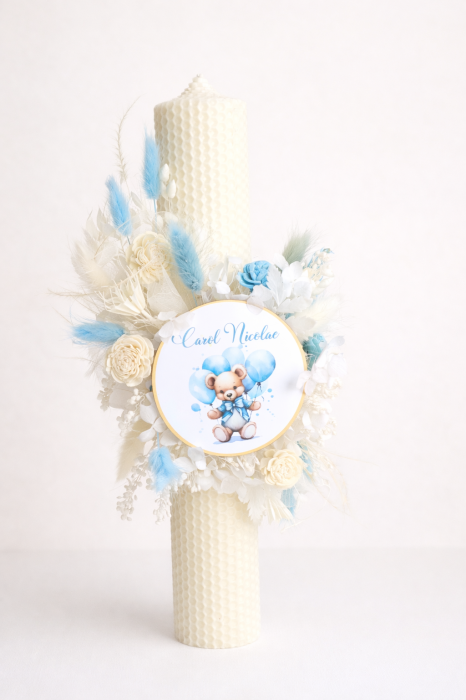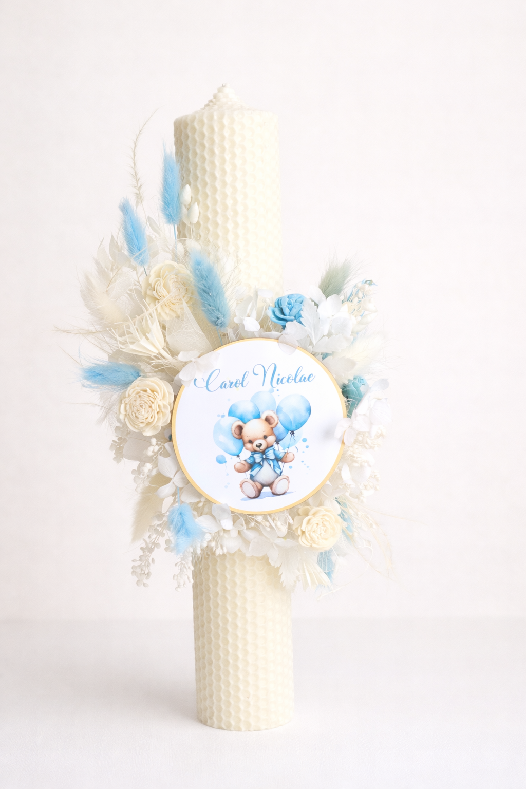 Little Claire Lumanare cu flori artificiale si disc personalizat ursulet cu baloane