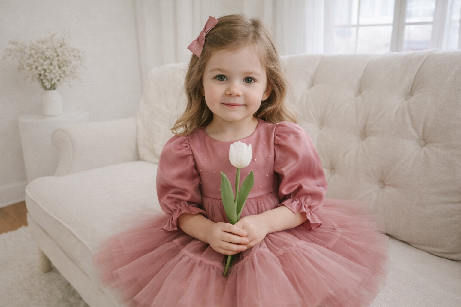 Culoarea roz pudră este simbolul  frumuseții, potrivindu-se perfect fetițelor.
