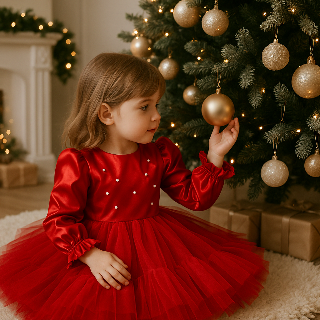 Este realizată din valuri de tulle fin, tafta și căptușită cu bumbac pentru a păstra confortul pielii copilului.