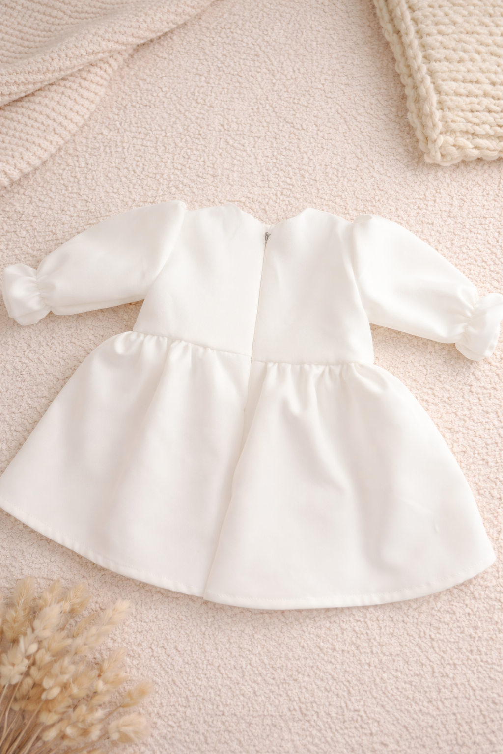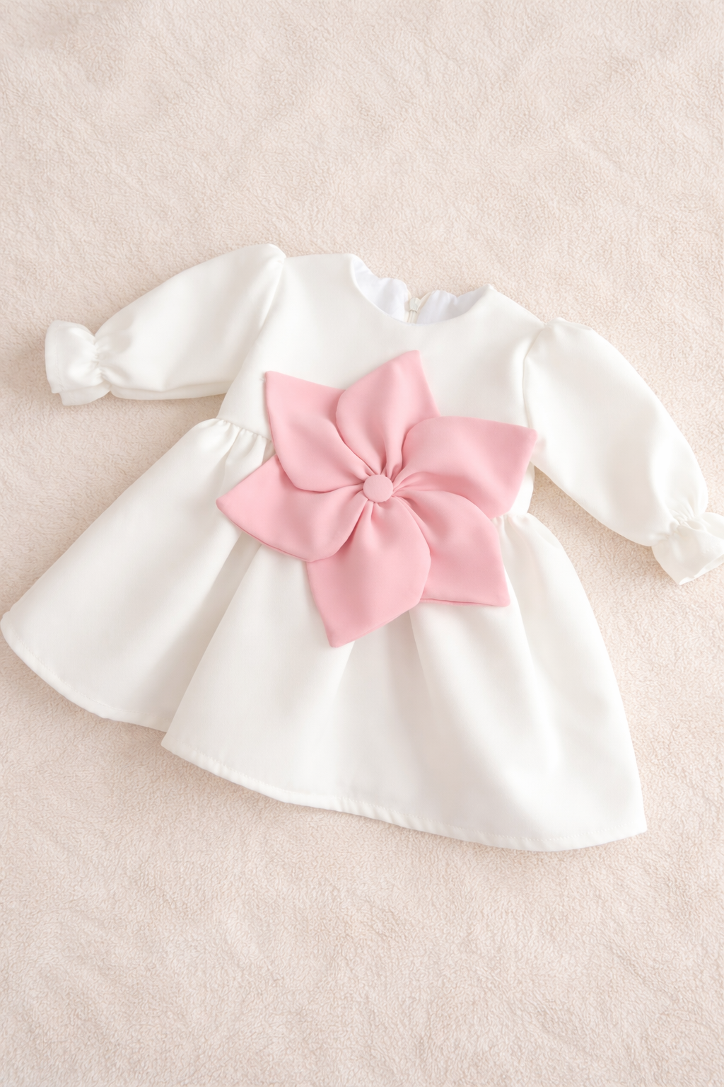 Această rochiță delicată este realizată din stofiță barbie premium, un material moale, fin și foarte plăcut la atingere, ideal pentru pielea sensibilă a bebelușilor. Interiorul este complet căptușit cu bumbac certificat OEKO-TEX, asigurând confort sporit pe toată durata purtării.
