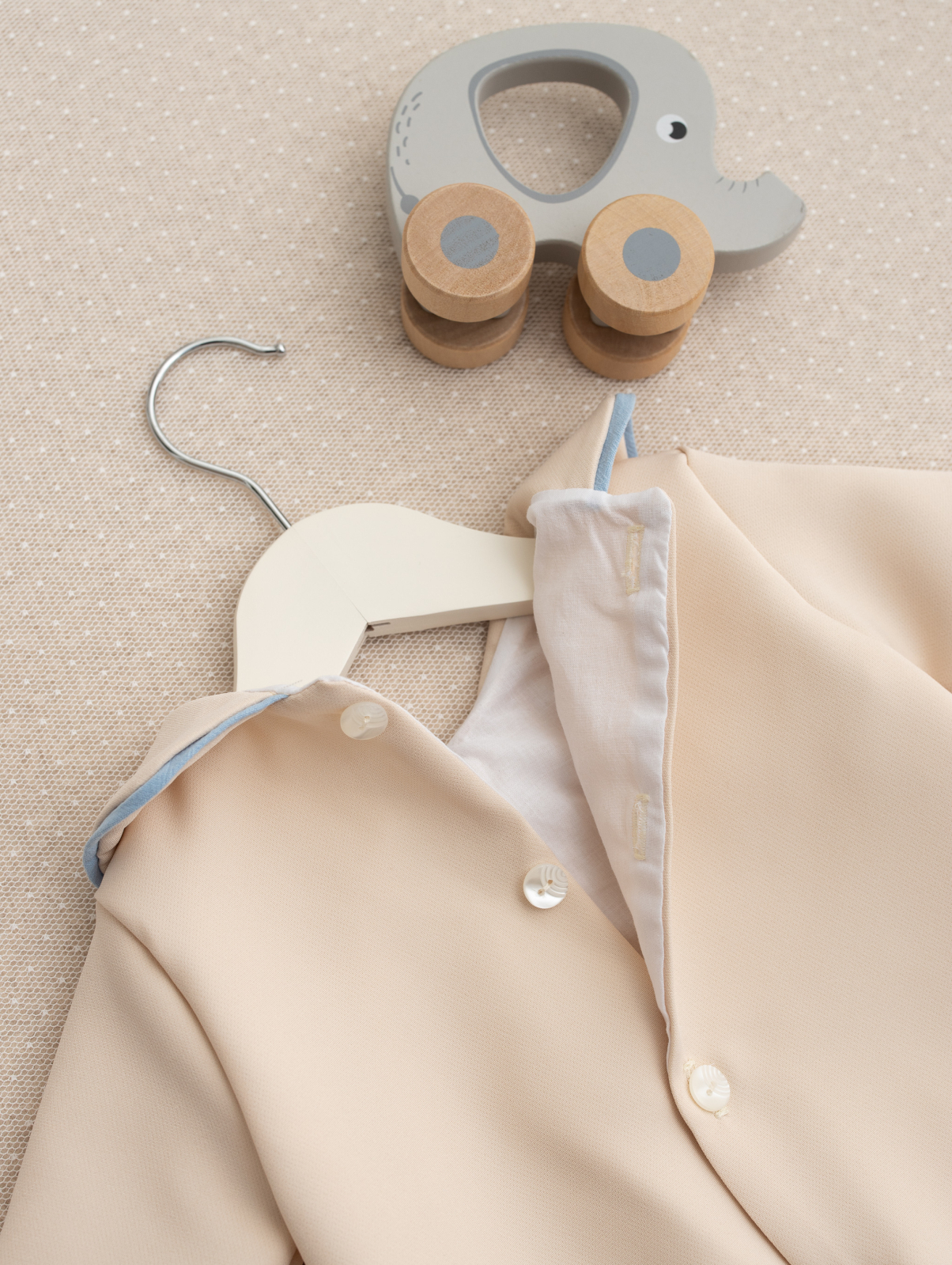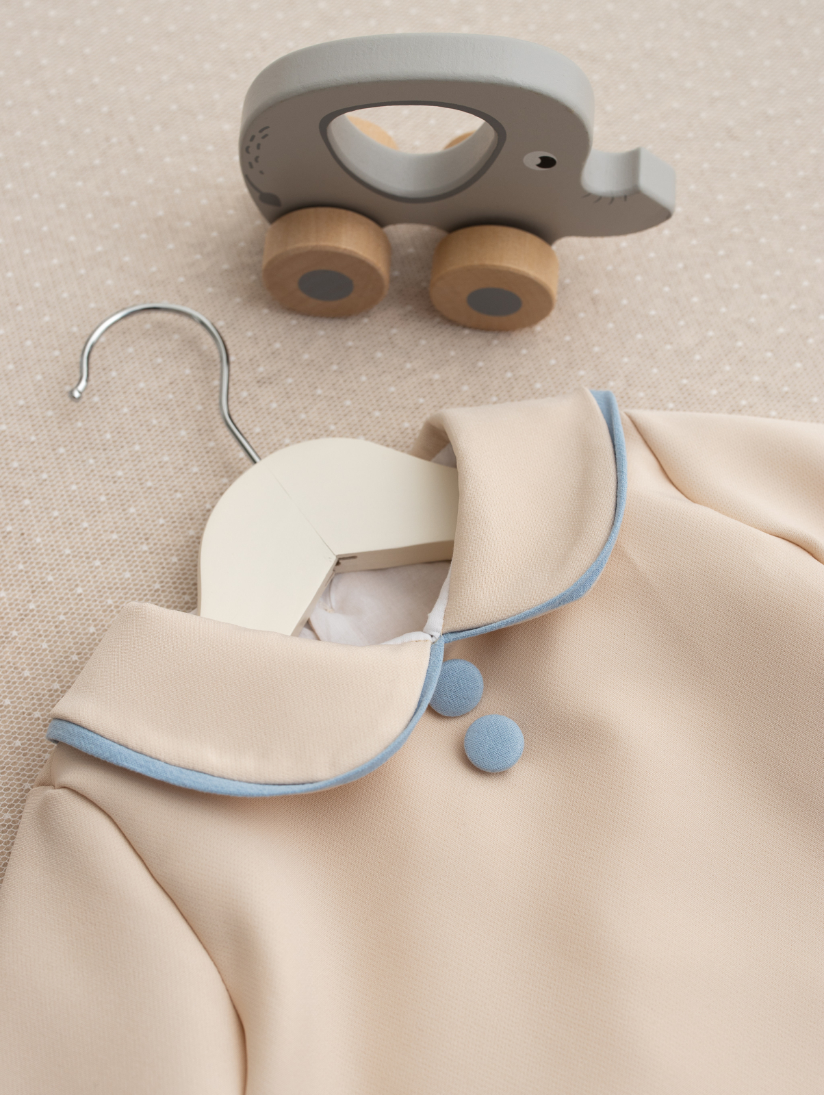 Creat pentru un eveniment cu adevărat special, acest set de botez pentru băiețel îmbină armonios eleganța clasică, confortul materialelor naturale și atenția la detalii, transformând ceremonia botezului într-o amintire de neprețuit.