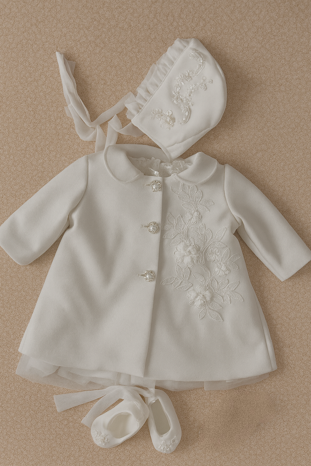 Set botez complet și elegant pentru fetițe – Trusou personalizat și ținută premium Angelique