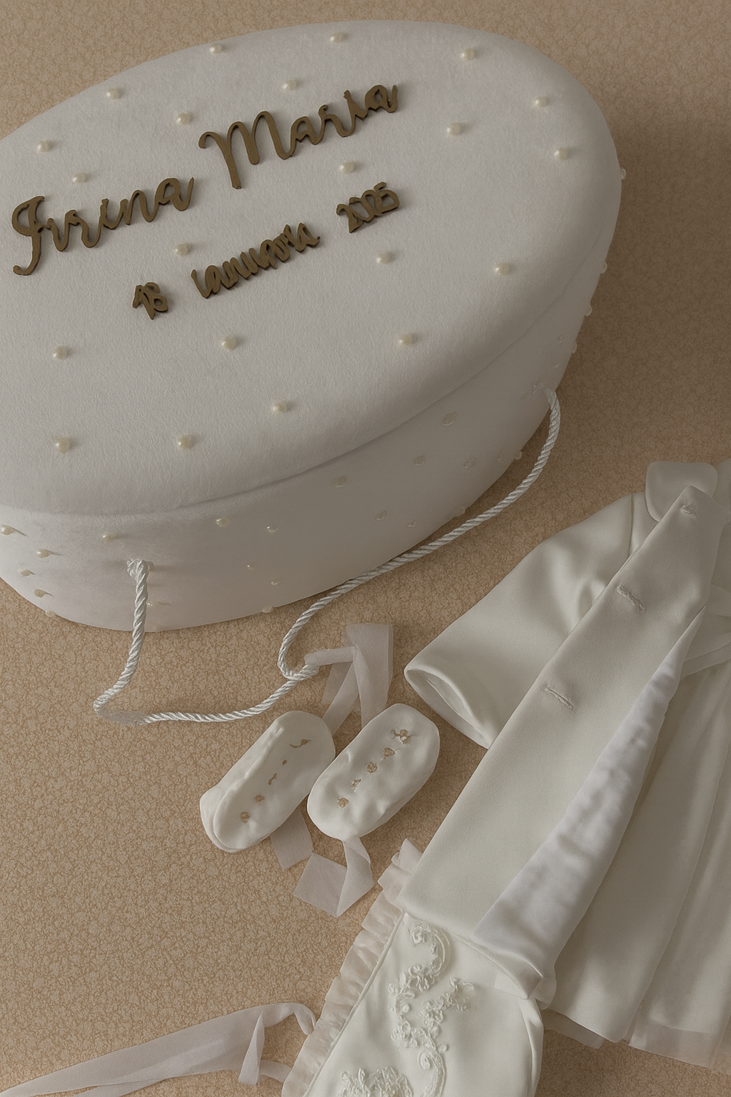 Transformă ziua botezului într-un moment memorabil cu acest set de botez premium, creat cu grijă pentru a îmbina tradiția cu rafinamentul. Fiecare element este realizat cu atenție la detalii, folosind materiale de cea mai înaltă calitate, pentru ca micuța ta să fie în centrul atenției, strălucind de frumusețe și delicatețe.
