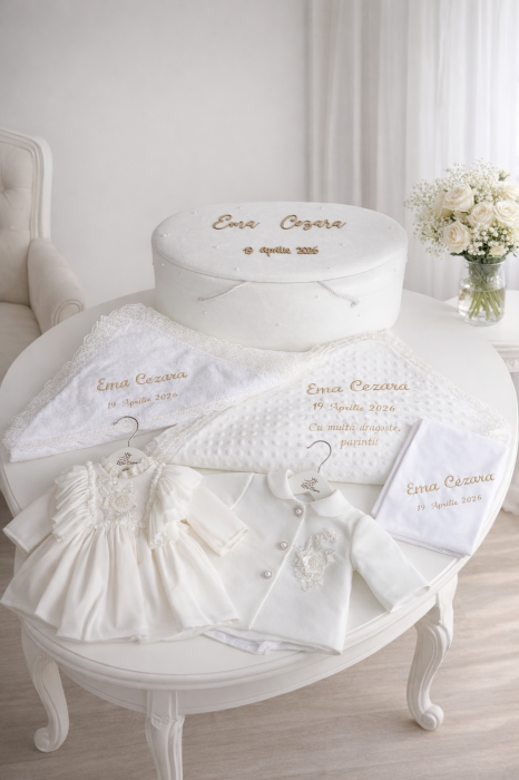 Trusourile de botez marca Little Claire, într-o gamă variată de modele, sunt alegerea perfectă pentru un botez de poveste. Fabricate în România de cele mai talentate mânuțe, produsele noastre abia așteaptă să aducă zâmbetul pe fața ta și a micuței tale. Achiziționează produsul dorit de pe site-ul nostru și bucură-te de calitate și un design deosebit.